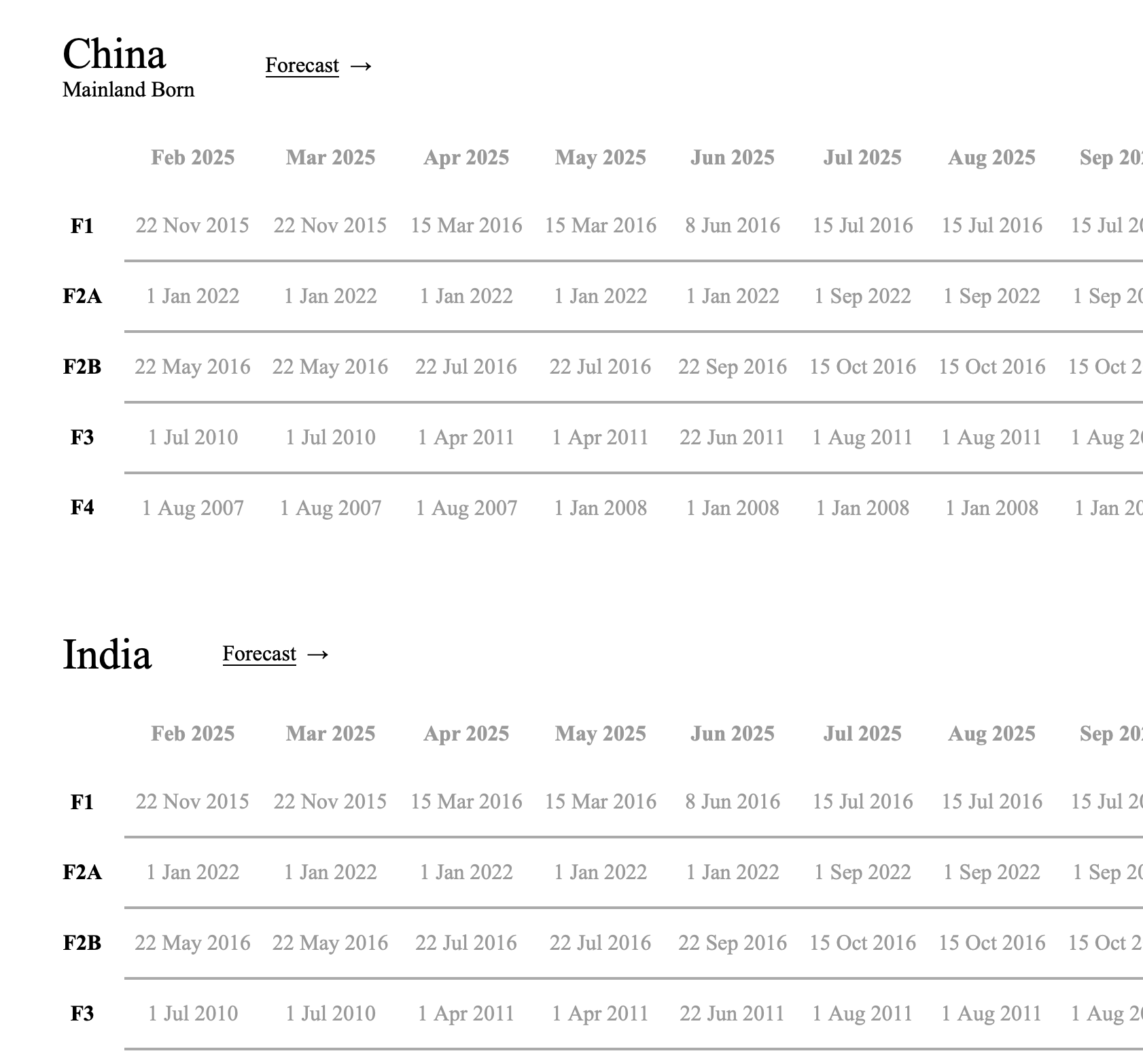 In any case, we still think that having multiple months worth of visa bulletin and forecast data in a skimmable format is handy.